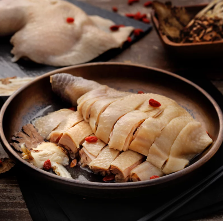 “Premium native chicken marinated in Shaoxing wine from TTL Puli Distillery, rich in aroma with a tender bite.”